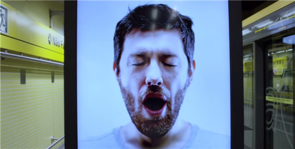 这的确是全球广告行业共同面对的趋势。巴西咖啡品牌Café Pelé的一则广告是戛纳广告奖的得奖作品之一。在早高峰时间,这家咖啡品牌在圣保罗最繁忙的地铁站里放了几块互动广告牌。广告牌里装有动作传感器,只要有人靠近,屏幕上的脸就会开始打呵欠。当经过的人越多,画面打呵欠的频率就越高。哈欠会传染,就在你根本停不下来的时候,一群妙龄女郎出现在地铁站里开始免费派咖啡。