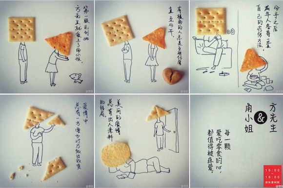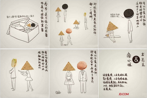 环时为京东做的“方先生&角小姐”的系列策划就是个继续扩大已有良好反应的例子。原来“方先生&角小姐”只是为了推广京东“食间到”零食销售活动所做的一个单次六格漫画,但因为在微博上引起了梁静、那英等明星的转发,形成了很好的反应,于是,到了2015年春节,这一漫画的新章节又再出江湖。