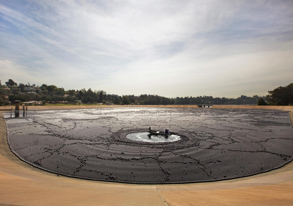 为保护水资源,美国洛杉矶水电局(LADWP)将9600万颗黑球投入到当地的艾芬豪(Ivanhoe)水库中。