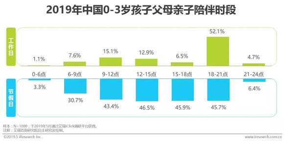 工作日亲子陪伴时段以下班后为高峰期,节假日则较为平均