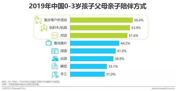 根据调研结果显示,半数父母会优先选择散步、玩具、对话等与孩子互动性较强、沟通较多的活动以实现亲子陪伴。其优势点在于:一方面通过沟通交流的方式将父母的情感输出,给予孩子更强的安全感,感受更贴心的亲情;另一方面则是通过深入的互动帮助父母发现孩子的细微变化,能够及时引导孩子往正面方向成长。