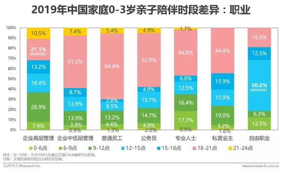 亲子陪伴时段差异:一定程度上受到职业影响,但工作日核心仍是以下班后为陪伴高峰