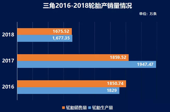 一言以蔽之,2018年是三角轮胎上市以来,最糟糕的一年,遭遇到销量、营收、利润三者同时下跌。并且对比2013和2014年的三角轮胎,在经营数据上呈现出断崖式暴跌。三角轮胎的复兴征程,终于在轰轰烈烈的上市三年后走到了尽头。