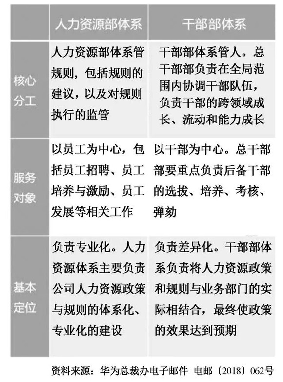 华为对人力资源部的职责进行了重新划分,同时也明确了总干部部的职责。