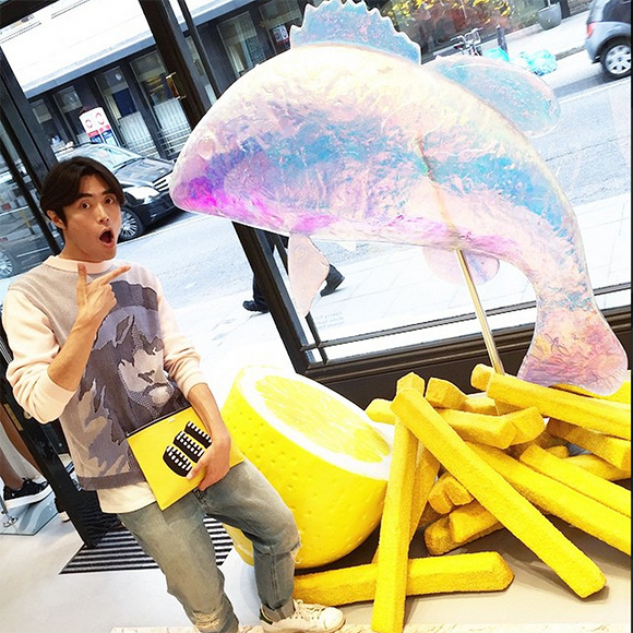 如果你碰巧路过伦敦的布鲁顿步行街,不要被摆放在KENZO旗舰店橱窗的大块头炸鱼和薯条给吓着。