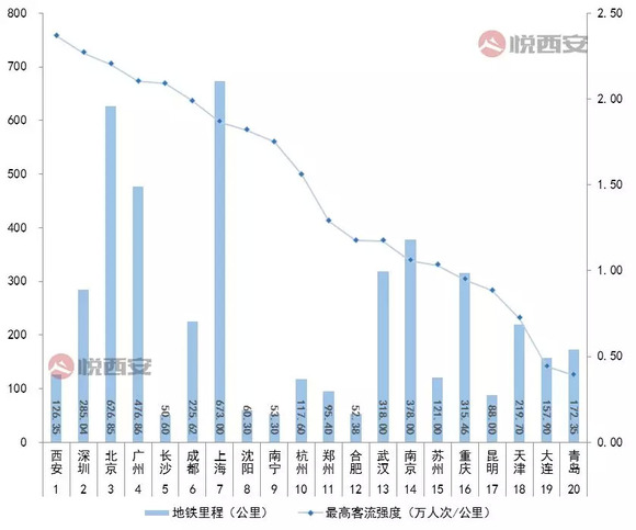 由于建设速度和人口规模不匹配,导致西安地铁的客流强度甚至赶超一线城市。