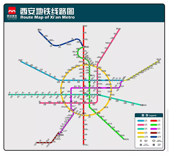 西安的城市空间结构,和北京高度类似,都是那种方方正正的古城形态。目前西安已经开通的1、2、3、4号线,正好形成了一个井字结构。包括在建的线路,大多数也都是穿城而过的放射状线路。
