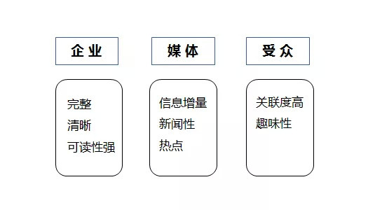 这个步骤叫做“校准三方需求”。一篇优秀的公关稿,往往能最大程度地平衡这三个问题,满足企业/媒体/用户三方的诉求,这也意味着整个信息传达的过程能更少摩擦,实现传播效果的最优:企业说了自己想说的,媒体不会因为稿件太“软”而拒稿,用户的接受度也较高。