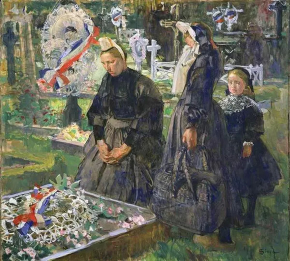 Lycian Simon,《公墓中的女子》,1918年,水彩,日本国立西洋美术馆(松方旧藏)
