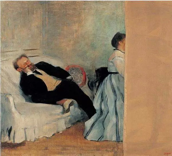 爱德华·德加《马奈和他的夫人》1868-69年 油彩画布。北九州市立美术馆(原为松方藏品)