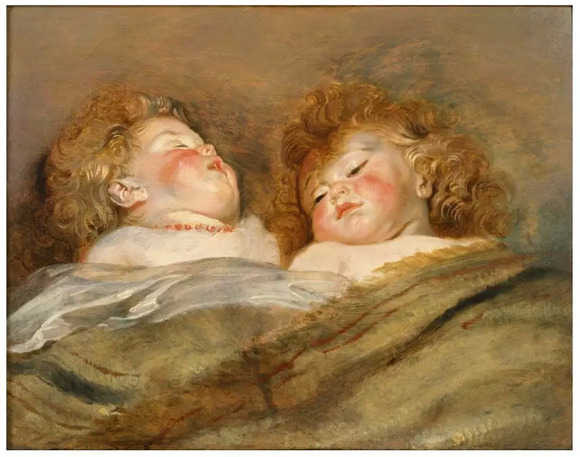鲁本斯《两个熟睡的孩子》,1577年至1640年 木板油画 50.5 x 65.5厘米。日本国立西洋美术馆购入