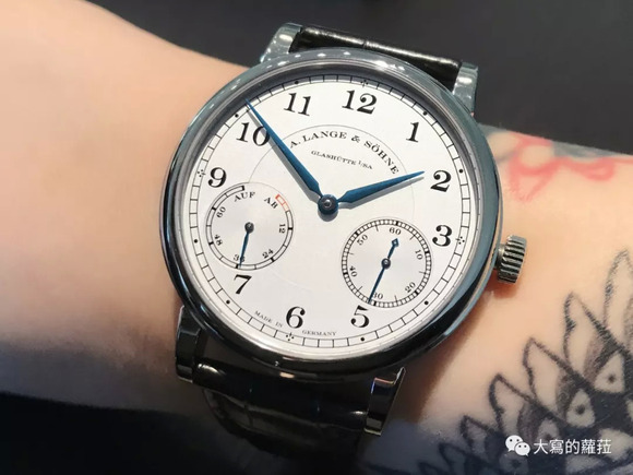 在构思完整这篇文章之前,我仔细地整理脑中所有朗格特殊的完美哲学,其中最让我觉得必须一提的其实还有1815 UP/DOWN动力储存显示腕表,当然在机芯结构上的限制,是不可能将4点和8点钟位置的小秒和动力储存与中央时分针轴在同一个水平线上,因为要有充分且足够大的针圈显示,就无法上移两个针圈的位置,牺牲了指示本身的清晰阅读性。