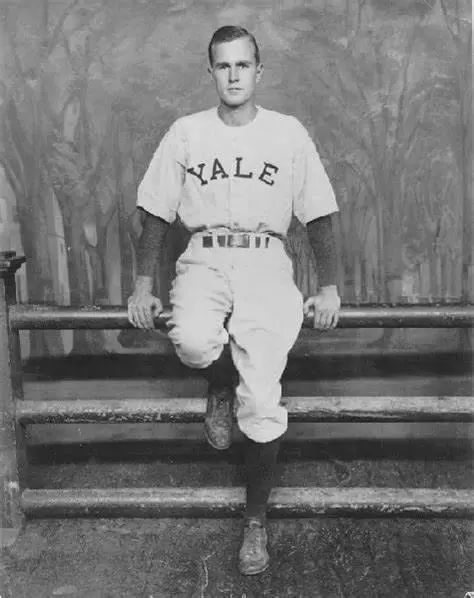 读中学的时候,老布什就是校棒球队和足球队成员。进入耶鲁大学之后,他更是以主力一垒手的身份两次参加大学世界大赛,大四那一年还成为了球队队长。老布什是如此和棒球有缘,在贝比-鲁斯去世前一周,他和这位巨星还在球场相遇。