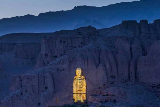 巴米扬遗址是世界文化遗产,其中东侧的大佛是世界第三高的立佛,名为塞尔萨尔,穿红色袈裟,建于5世纪,高53米。西侧还有一尊名为沙玛玛的佛像,高38米,披蓝色袈裟,建于1世纪。张昕宇、梁红夫妇运用建筑投影技术重现的大佛即是53米高的塞尔萨尔。
