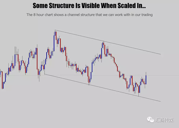 上面的日图看上去并不友好,但有时候你缩小一点时间框,就能发现某些可以交易的市场结构,比如下图的8小时图中能够看到通道形态,这时候也存在交易机会。