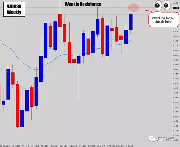 比如下图NZD/USD交易的例子,首先我在周图上寻找潜在的价格反转点: