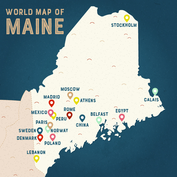 随着越来越多的旧大陆移民来到美洲,这片土地上亦有越来越多的地点被移民用他们熟悉的称呼来命名。在美国的各大城市,以某移民群体的母国命名的地区司空见惯,如“唐人街”“小意大利”“日本城”等等。不过最有代表性,也最让人惊讶的当属缅因州:这个位于美国东北角的州有着诸多以海外国家和城市命名的城镇,那里有挪威、巴黎、丹麦、罗马、瑞典、贝尔法斯特,甚至中国。有趣的是,美国作家卡洛琳·丘特(Carolyn Chute)曾写过一部题为《缅因州埃及市的豆子》(The Beans of Egypt, Maine)的小说,她特地虚构了“埃及市”这个地方,用来暗示缅因州众多稀奇古怪的“洋地名”,但小说家自己也没有想到,缅因州还真的有这么个地方。