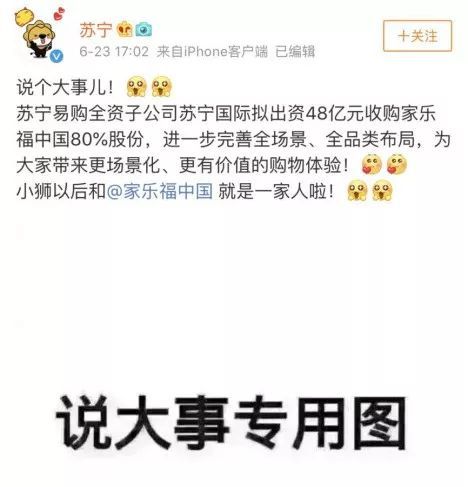 近些年来一直低调做事的的苏宁易购昨天突然放了一个大招!苏宁官微23日发了一条微博,第一句话就是“说个大事儿”!到底是什么大事,想必大家现在都已经知道了。