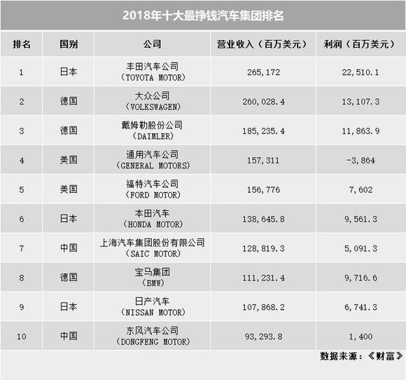 前段时间,《财富》杂志发布了2018年十家营业收入最多的车企名单。这份榜单不仅记录了上榜车企的营业收入状况,还公示了其收益情况。当中,日系车企与德国各占据三席,美系与中国则平分其中的四个位置,这么下来,在榜单里就呈现出四分天下的局面。