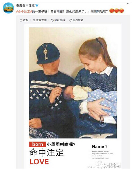 哇,今晚临时还有热点爆出,好有爱,周董喜获”千金“一枚,真是可喜可贺。