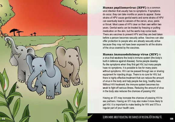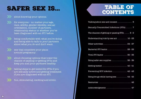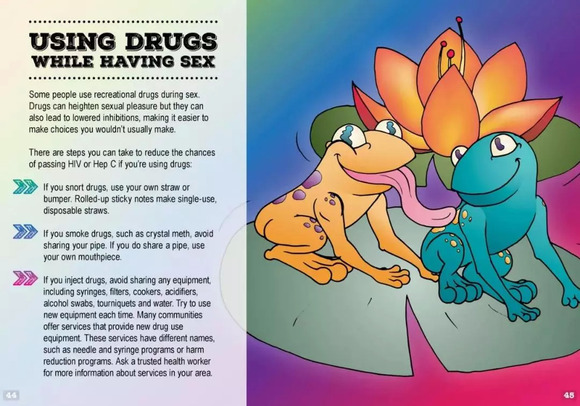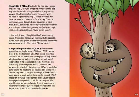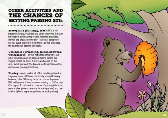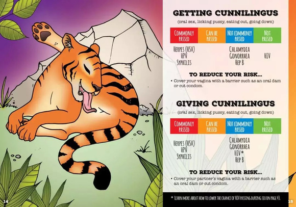 该小册子由加拿大爱滋病治疗资讯与交流中心(CATIE)出版,除了提供性传播感染(STI)以至同意的性行为与性癖资讯外,还使用卡通动物如老虎和熊的性行为作讲解,又有涉及性行为中使用毒品等内容。