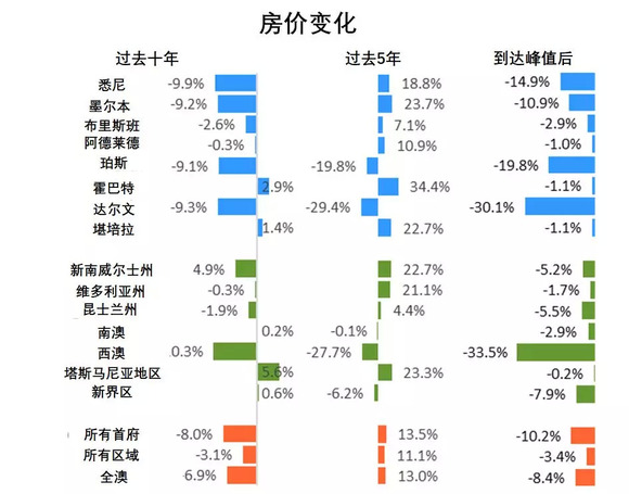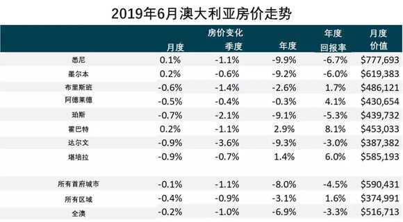 目前整个澳洲的房价走势在很大程度上受到悉尼与墨尔本房价下跌放缓的影响。