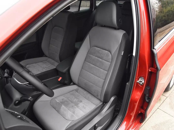 该版本的原装座椅为透气性较好的织布材质(试驾的这辆车加装了皮套)。体验发现,该座椅内部填充物充实,对臀部有不错的舒缓效果。座椅的侧翼包裹度良好,当车辆行驶时能提供足够的支撑。不足的是,主副驾均为手动调节,考虑到入门级身份也就不强调了,和大众谈性价比是永远不会有结果的。