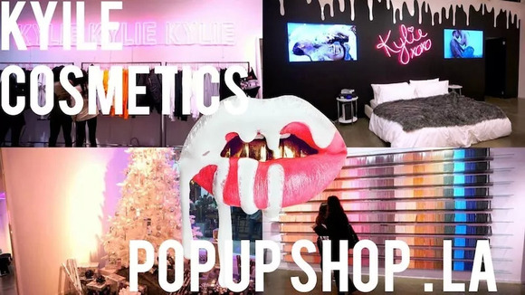 Kylie Jenner在洛杉矶的Westfield Topanga开了一家Kylie Cosmetics的快闪店。这家店的特色是复制Kylie Jenner卧室的样子,摆放一棵圣诞树,用Kylie日常化妆品作为装饰,并出售其全套化妆品、礼品套装和唇部套装。