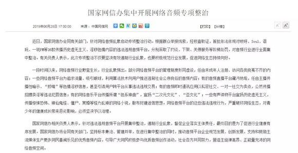 再次,荔枝FM、企鹅FM等网络电台以及吱呀、soul、陪我等语音社交软件在查处中遭到下架处理,无疑将对存在靠打色情擦边球吸引流量意图的网络电台以及语言交友软件敲响警钟,内容发展轨道将有所改变。