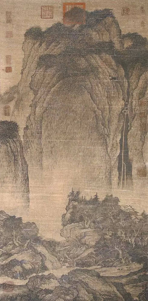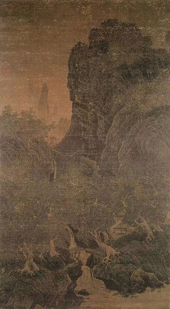 北宋 范宽 《秋林飞瀑图》绢本,设色,纵181cm,横99.5cm(现藏于台北故宫博物院)