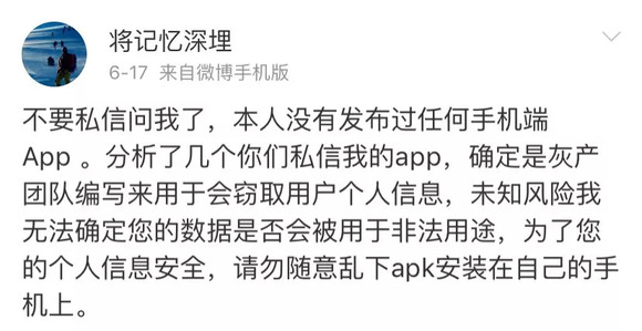 事后,最先发出“原谅宝”消息的博主在微博澄清,市面上的原谅宝APP与他毫无关系。
