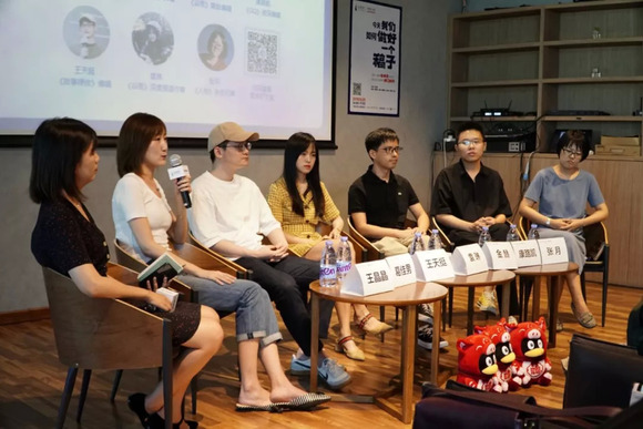 《智族GQ》报道组在北京大学的线下沙龙,从左到右,人物分别是靳锦、李颖迪、洪蔚琳、吴呈杰、于蒙、刘敏、何瑫