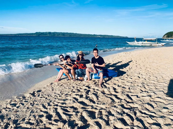 《智族GQ》报道组在长滩岛团建,从左到右人物分别是卫诗婕、吴呈杰、李颖迪、何瑫