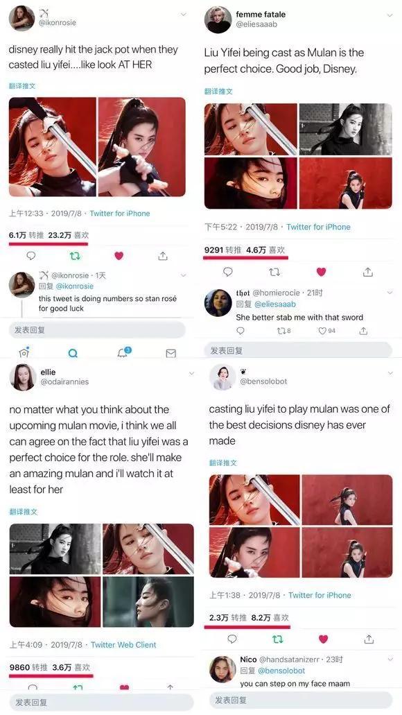 最新的24小时内的数据已经出炉,《花木兰》在推特上2270万、脸书2220万、Ins1620万、Youtube950万,累计突破7060万,或许很人多不知道这些数据在什么级别,但它已经是影史最为顶级的数据了,打入了历史TOP20的行列。