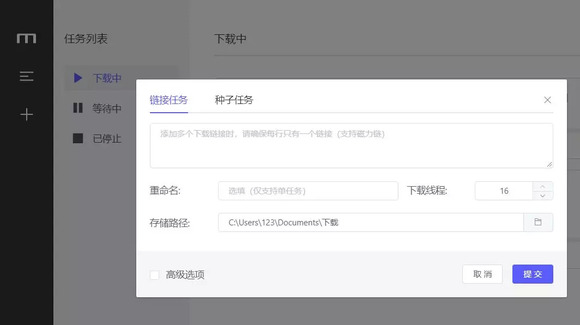 Motrix 可以下载 HTTP、FTP、BT、磁力链接以及百度网盘等资源,并且跨平台支持 Windows、Mac、Linux 三大系统。