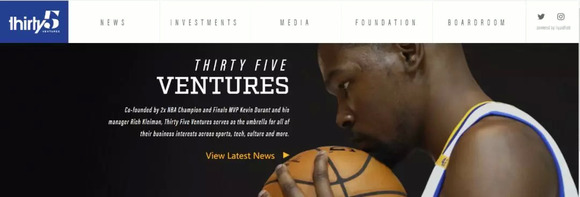在2016年来到勇士队的杜兰特做得更加极致,他直接开了个风投公司,叫Thirty Five Ventures。