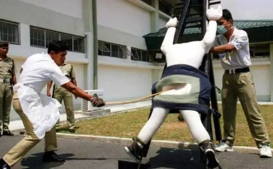 再看绞刑。新加坡是少数保留死刑制度的发达国家之一,执行率在全世界名列前茅。最令人毛骨悚然的是,死刑方式不是电刑或注射死刑,而是原始、残酷的绞刑。