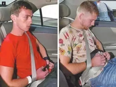 犯事后,两人途经马来西亚准备飞往澳大利亚,在机场被捕,后被引渡至新加坡。最终,两人被判坐牢9个月,鞭刑3下。