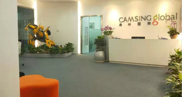 透过玻璃门,可以看到对面的墙壁上挂着“承兴国际”的招牌,里间入口的左侧放置着变形金刚“大黄蜂”的模型。据承兴国际国股2018/19中期报告显示,其从美国著名玩具公司孩之宝获得授权,与中国建设银行合作推出《变形金刚6》主角大黄蜂为主题的联名信用卡。