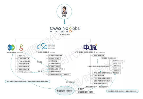 “承兴”有很多官网,从这些网站中可看出,承兴国际是罗静“承兴系”的主体。据其官网显示,承兴国际集团(网站logo上显示为“承兴国际”)创立于1996年,在广州、香港、北京、上海、苏州、深圳、新加坡、美国洛杉矶等地皆设有分公司,拥有香港主板上市公司承兴国际控股(02662.HK)、A股上市公司博信股份(600083.SH)和新加坡主板上市公司Camsing Healthcare(BAC),分别对应承兴国际集团的泛娱乐、智能硬件和大健康三大产业板块。