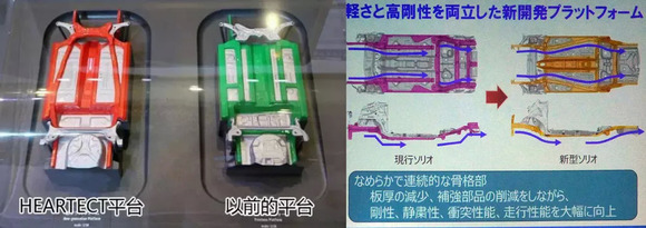 Solio在行驶性能上也要好些,这主要是得益于新开发的平台。有趣的是,虽然铃木品牌用于B-Segment车型(如雨燕,英格尼斯)的HEARTECT平台跟Solio没什么大新闻可搞,但从底盘构造和轻量化手段等特征来看,2015年诞生的Solio使用的“新平台”和2017年诞生的雨燕所用的“HEARTECT平台”,其实是有很大关系的……