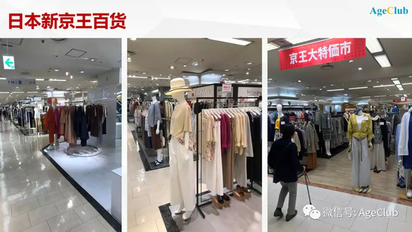 新京王的老年服装都定位比较高端,单价在800到1500人民币左右,也有更贵的几千元人民币的老年服装,也非常受欢迎。有些很知名的日本设计师,比如三宅一生的副线,有专门的中老年产品线,真的是完全不一样的感觉,是真正意义上优雅的时装。