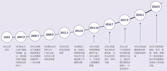 360公司创立于2005年,是互联网免费安全的首倡者,先后推出360安全卫士、360手机卫士、360安全浏览器等国民级安全产品,同时, 360为上百万家国家机关和企事业单位提供包括安全咨询、安全运维、安全培训等全方位安全服务,是中国最大的互联网和移动安全产品及服务提供商。2018年,360公司营收131亿元,净利润35亿元。