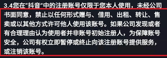 事实上,抖音官方在《用户服务协议》中明确规定“禁止以任何形式赠与、借用、出租、转让、售卖或以其他方式许可他人使用该账号”,这一规定让抖音号交易市场被打上了“灰产”标签。