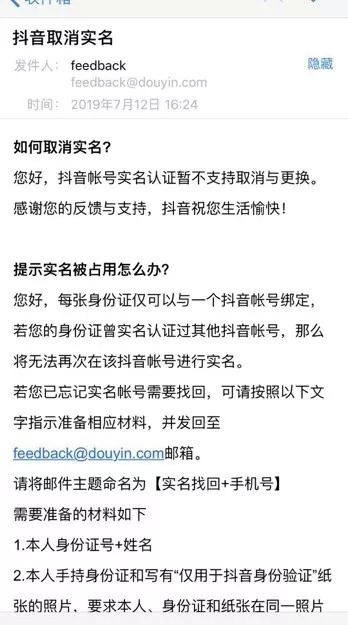 某负责过抖音号交易的中介认为,抖音号交易的市场空间会越来越窄,“官方为了维护内容平台生态是不会开放抖音号交易市场的,而目前的一系列举动比如无法取消实名认证,都在进一步压制这个市场。”