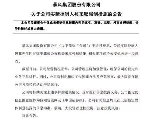 昨天,暴风集团创始人、董事长兼 CEO 冯鑫因为「 涉嫌犯罪 」,被控制了。
