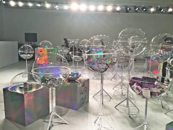 这间超市有若干摄像机,对准超市的货品架和收银台。杜蕾斯概念超市的货架,被做成透明的球,它们或高或低,并不规律地摆放着,每个球里都放的都是“杜蕾斯Air空气套”,偶尔也有少许其他产品垫个底。干净透明的场景都是为了衬托出Air空气套“极薄”的特点。