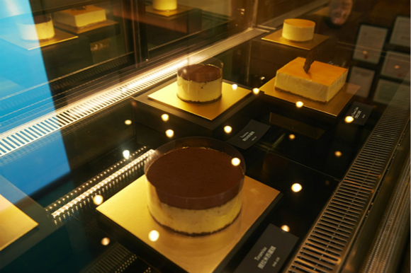 位于商场4楼的餐厅与Gucci门店类似,以咖啡色与金色作为外墙的主色调,大量使用木质与金属原料。“1921 Gucci”的店名低调地挂着,门外除了领位员的工作柜台外,还有一个长约2米蛋糕柜台,里面的蛋糕是顾客唯一可以不用排队即可外卖的食物,按照不同尺寸,价位在200-400元之间。