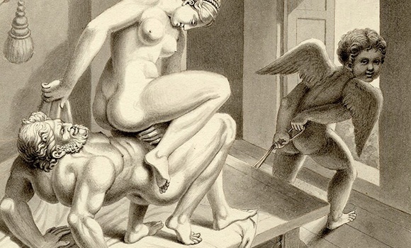 色情革命如火如荼,且再举最后一例。19世纪时,有人根据一幅现已失传的版画,复原了马坎托尼奥·雷蒙迪的那部性爱手册。在其中,有一页描画了一名女子骑在一个男人身上(见图六)。