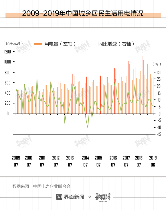 自2011年起,每年城乡居民生活用电的高峰期均出现在8月,最耗电也可能最热的月份或许才刚刚到来。